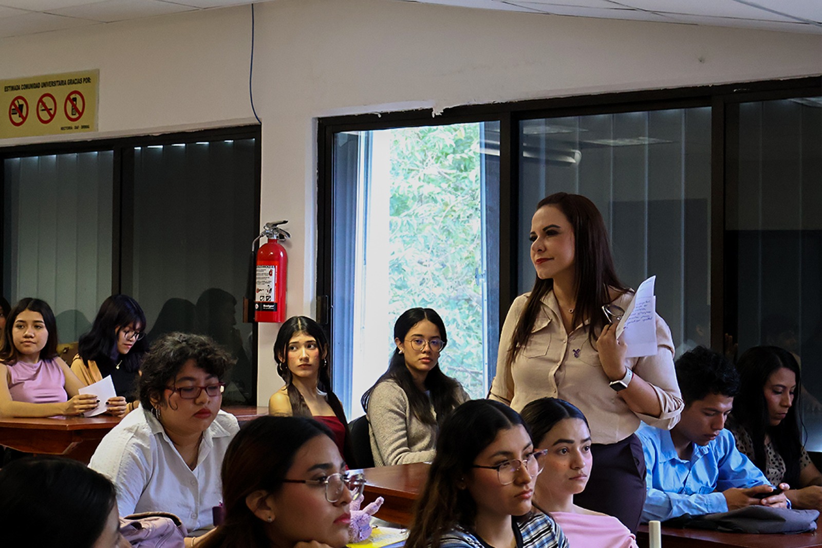 Por parte de la UQROO, se contó con la presencia de la profesora Luz Margarita González López, así como de alumnas y alumnos de la Licenciatura en Derecho, quienes participaron activamente en el intercambio de ideas y reflexiones.