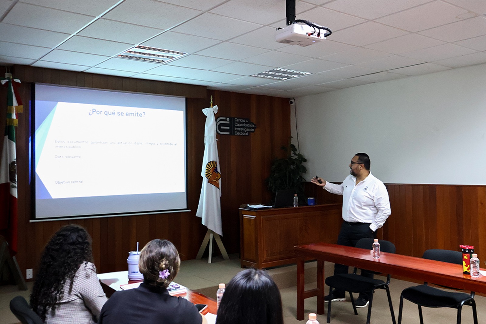 En la jornada participaron también Ilse Berenice Cossío Lugo, Titular del Órgano Interno de Control y asesora del Comité; Carla Adriana Mingüer Marqueda, Secretaria Técnica del Comité de Ética y Secretaria de Estudio y Cuenta; Maogany Crystel Acopa Contreras, Secretaria General de Acuerdos; Estefanía Carolina Caballero Vanegas, Defensora Pública Electoral; y Montserrat Alejandra González Valencia, Auxiliar Administrativa, quienes participan en calidad de vocales e Irma del Carmen Ortiz Antonio, Coordinadora de Substanciación y Responsabilidad Administrativa del Órgano Interno de Control.