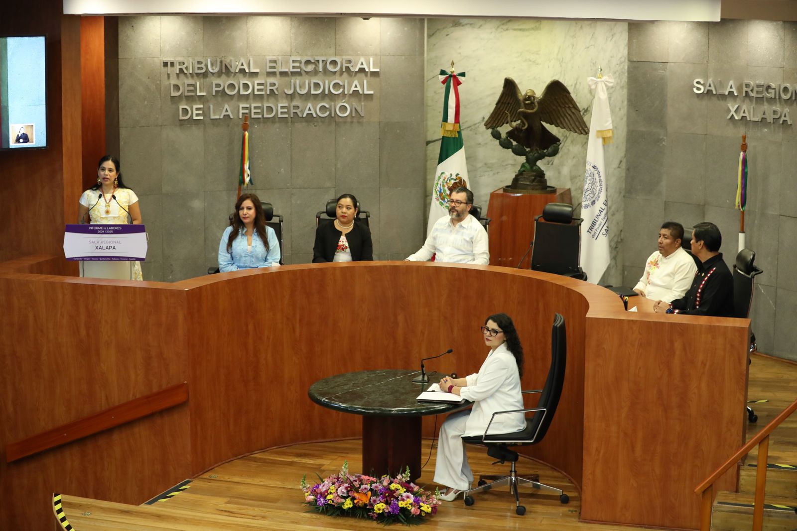 Durante la sesión, realizada en el Salón de Plenos de la Sala Regional Xalapa, la Magistrada Bustillo Marín presentó los resultados de la actividad jurisdiccional y administrativa desarrollada durante el periodo 2024–2025, en cumplimiento de lo establecido en el Reglamento Interno del Tribunal Electoral del Poder Judicial de la Federación.