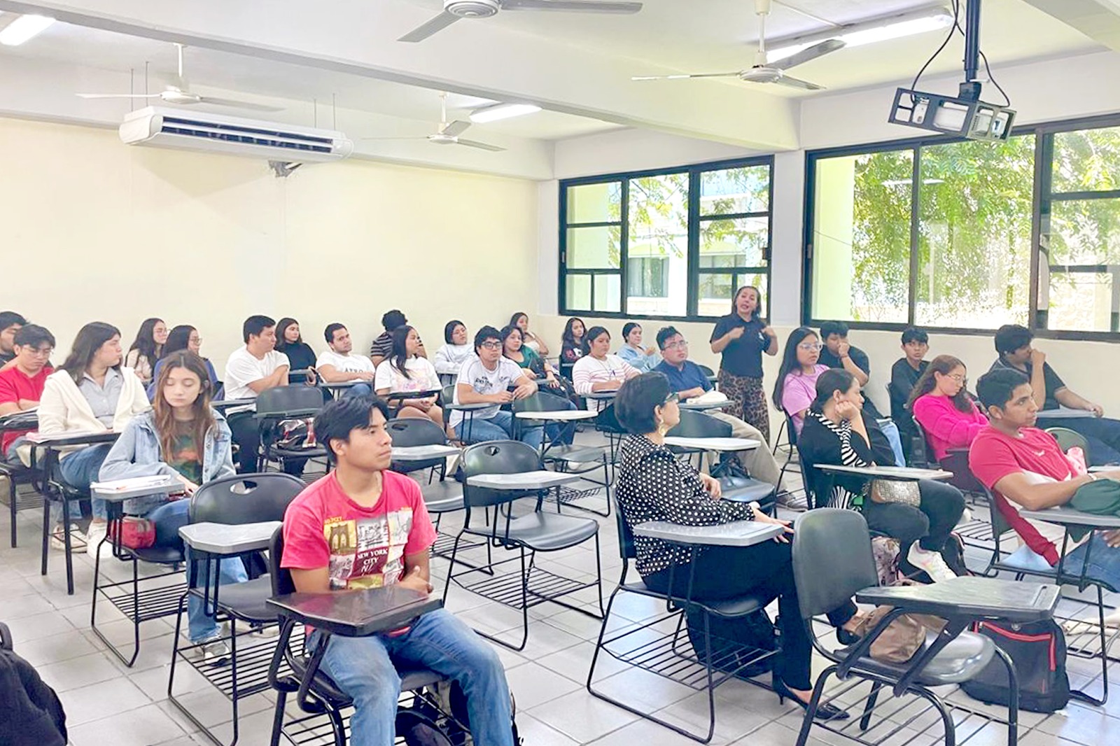 En esta ocasión, la plática fue impartida por personal de la Unidad de Capacitación e Investigación, es decir, por la jefa del Área de Investigación, María Sarahit Olivos Gómez y por la jefa de Área de Capacitación, Rossely Denisse Villanueva Kuyoc. Por parte de la UQROO, se contó con la presencia de la profesora Luz Margarita González López.