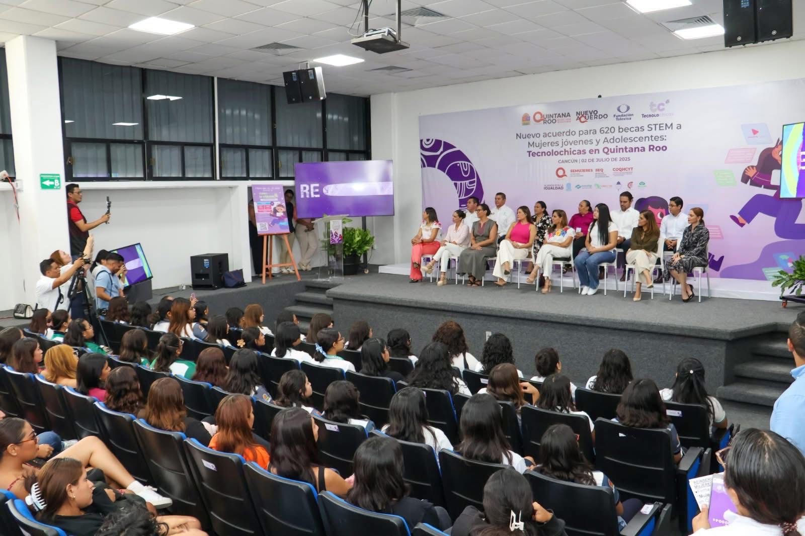 El acto se llevó a cabo en el Auditorio de la Universidad Tecnológica de Cancún y congregó a autoridades estatales, representantes de instituciones educativas y organizaciones civiles, con el objetivo de formalizar un acuerdo interinstitucional que impulsa la participación de adolescentes y mujeres jóvenes en áreas STEM (Ciencia, Tecnología, Ingeniería y Matemáticas).