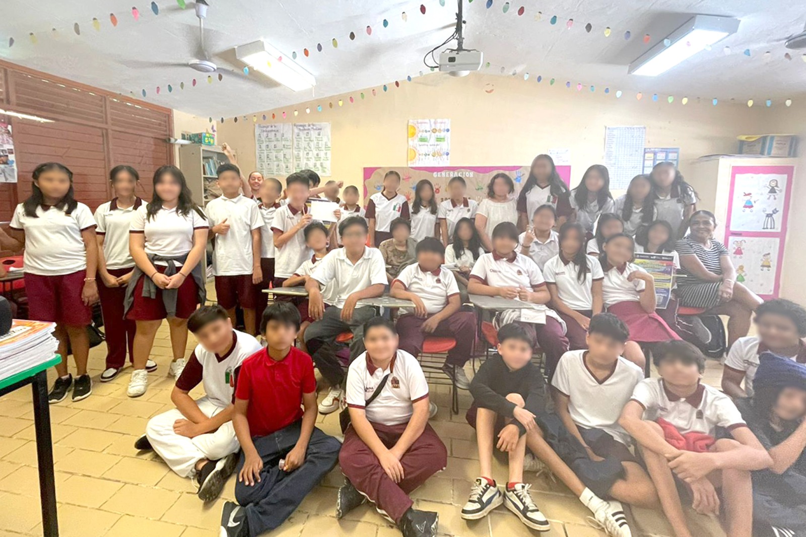 Durante la visita, las jefas de Área de Capacitación, Rossely Denisse Villanueva Kuyoc y de Investigación, María Sarahit Olivos Gómez, de la Unidad de Capacitación e Investigación, presentaron a las y los estudiantes los detalles de la convocatoria, fomentando su interés en temas de justicia electoral y participación infantil.