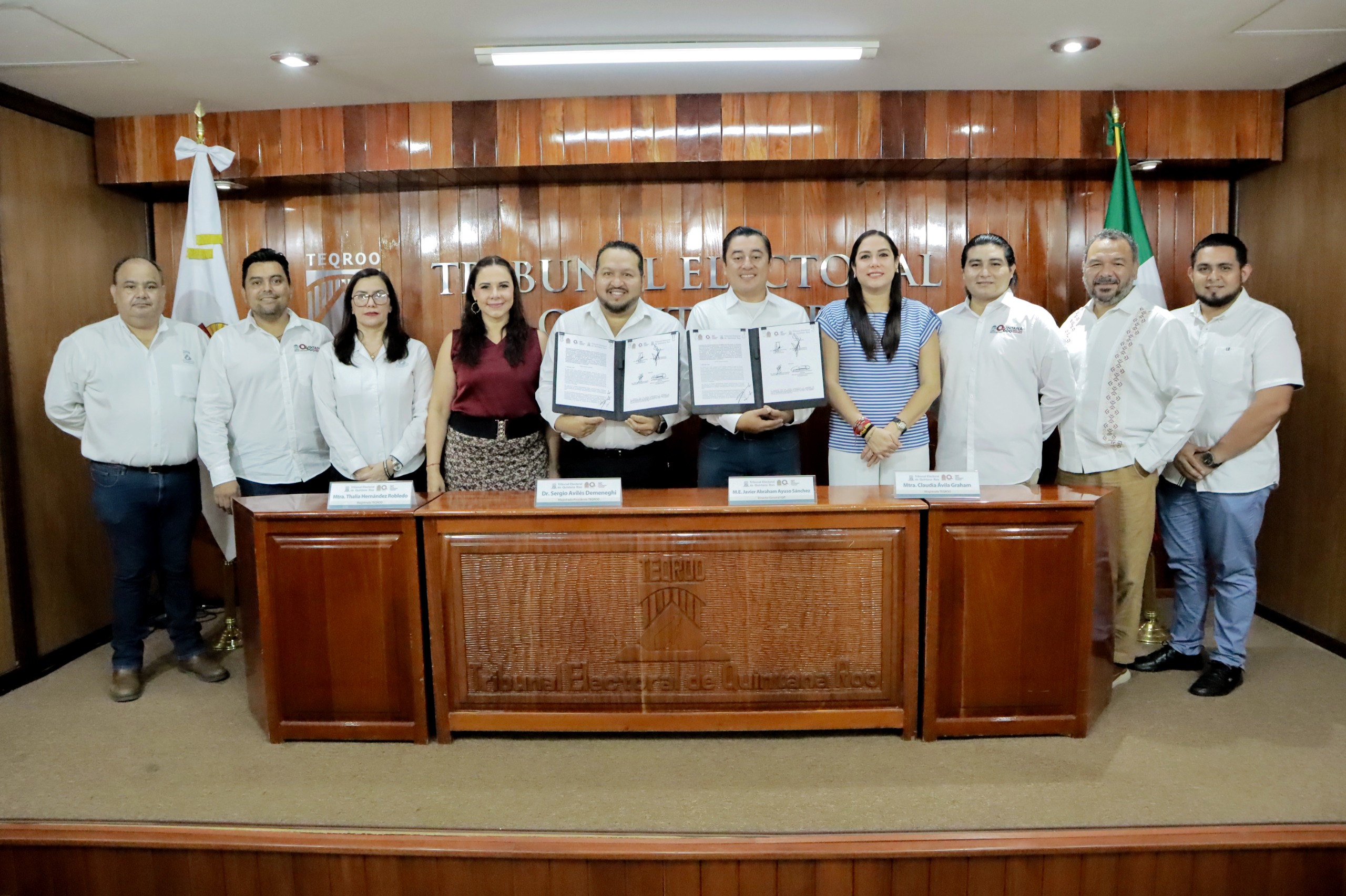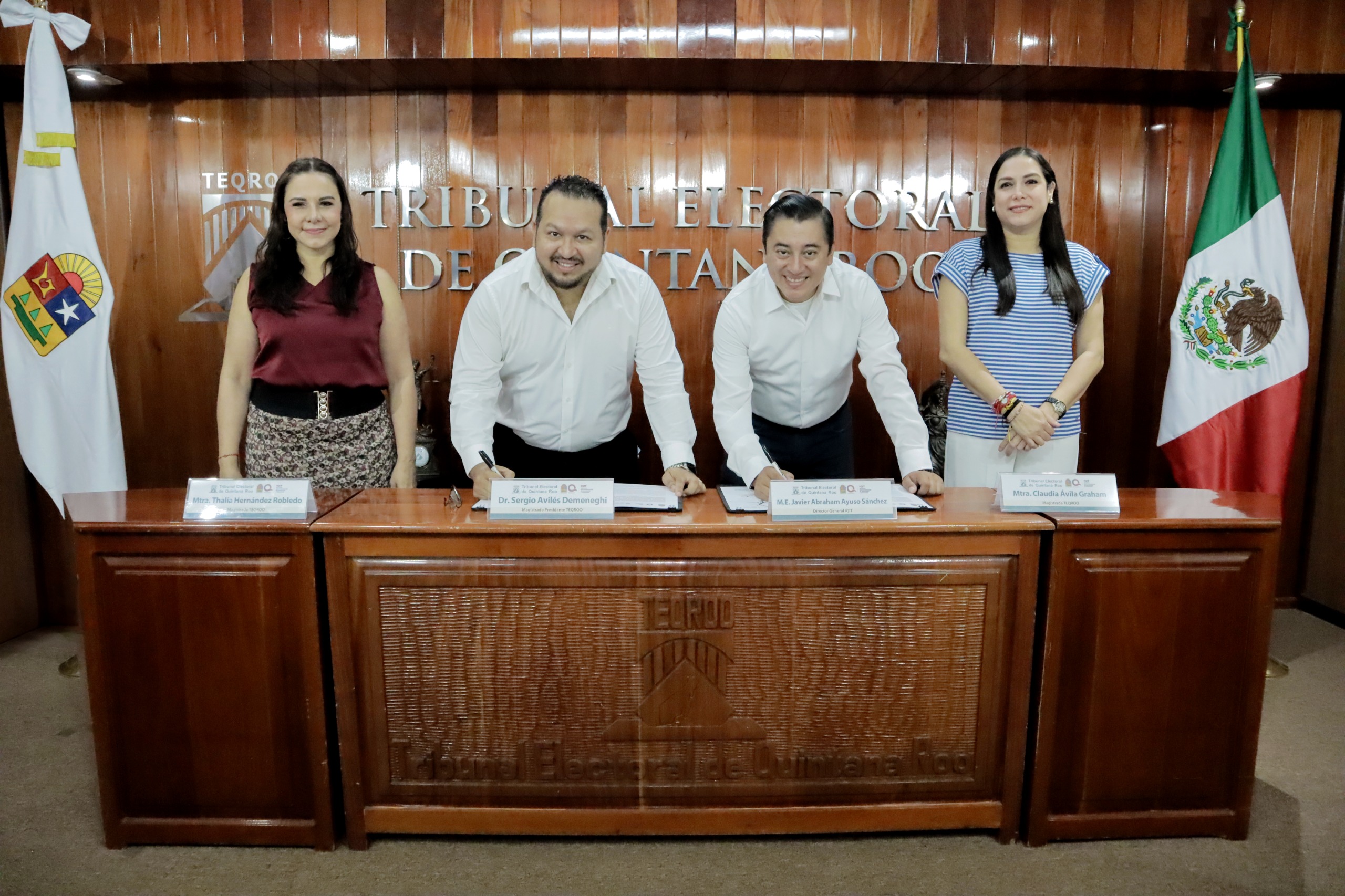 El convenio fue suscrito por el Magistrado Presidente del TEQROO, Sergio Avilés Demeneghi, y el Director General del IQIT, Javier Abraham Ayuso Sánchez, en una ceremonia celebrada en el Aula del Centro de Capacitación e Investigación Electoral del Tribunal. Al acto asistieron también las magistradas Claudia Ávila Graham y Thalía Hernández Robledo, así como personal directivo de ambas instituciones.
