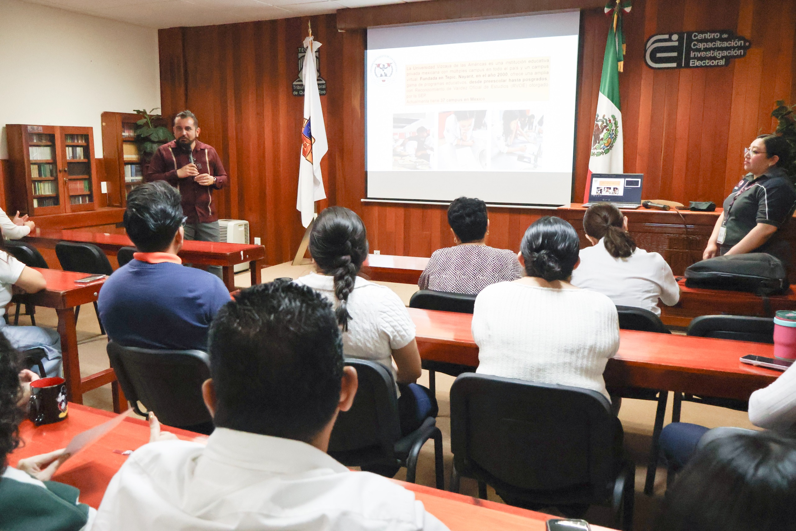 Personal de la Universidad Vizcaya de las Américas imparte charla informativa en el TEQROO