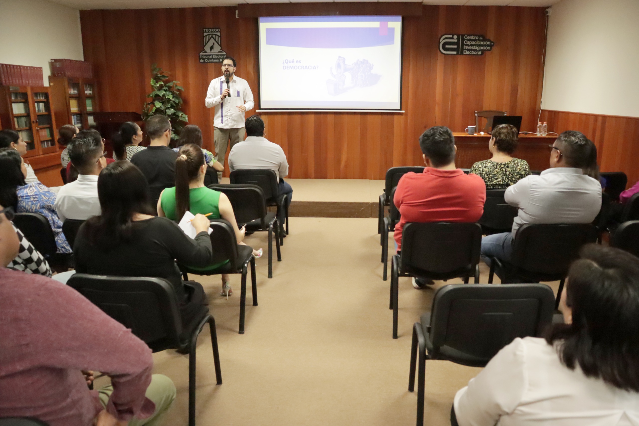 Chetumal, Quintana Roo a 14 de septiembre de 2023.- El Magistrado Presidente del Tribunal Electoral de Quintana Roo (TEQROO), Sergio Avilés Demeneghi; la Magistrada Claudia Carrillo Gasca, la Magistrada en Funciones, Maogany Crystel Acopa Contreras y personal de este órgano jurisdiccional participaron en la Conferencia “Democracia y Derechos Humanos: Un abordaje desde las minorías parlamentarias”, en el marco del Día Internacional de la Democracia.