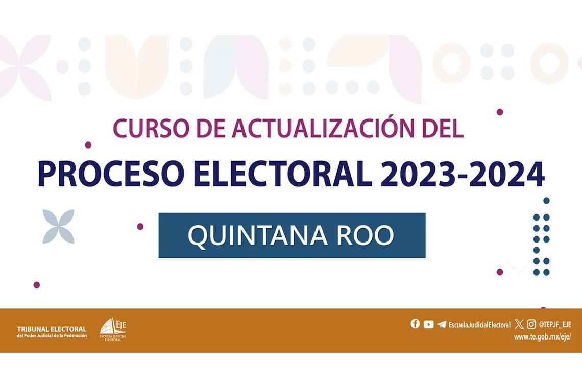 Chetumal, Quintana Roo a 17 de noviembre de 2023.- El Tribunal Electoral de Quintana Roo (TEQROO), el Instituto Electoral de Quintana Roo (IEQROO) y representantes de los partidos políticos de Quintana Roo concluyeron el curso virtual “Actualización del Proceso Electoral 2023-2024”, impartido por la Escuela Judicial Electoral (EJE) del Tribunal Electoral del Poder Judicial de la Federación (TEPJF) en coordinación con la Unidad de Capacitación e Investigación de este órgano electoral.