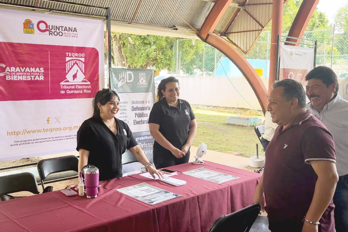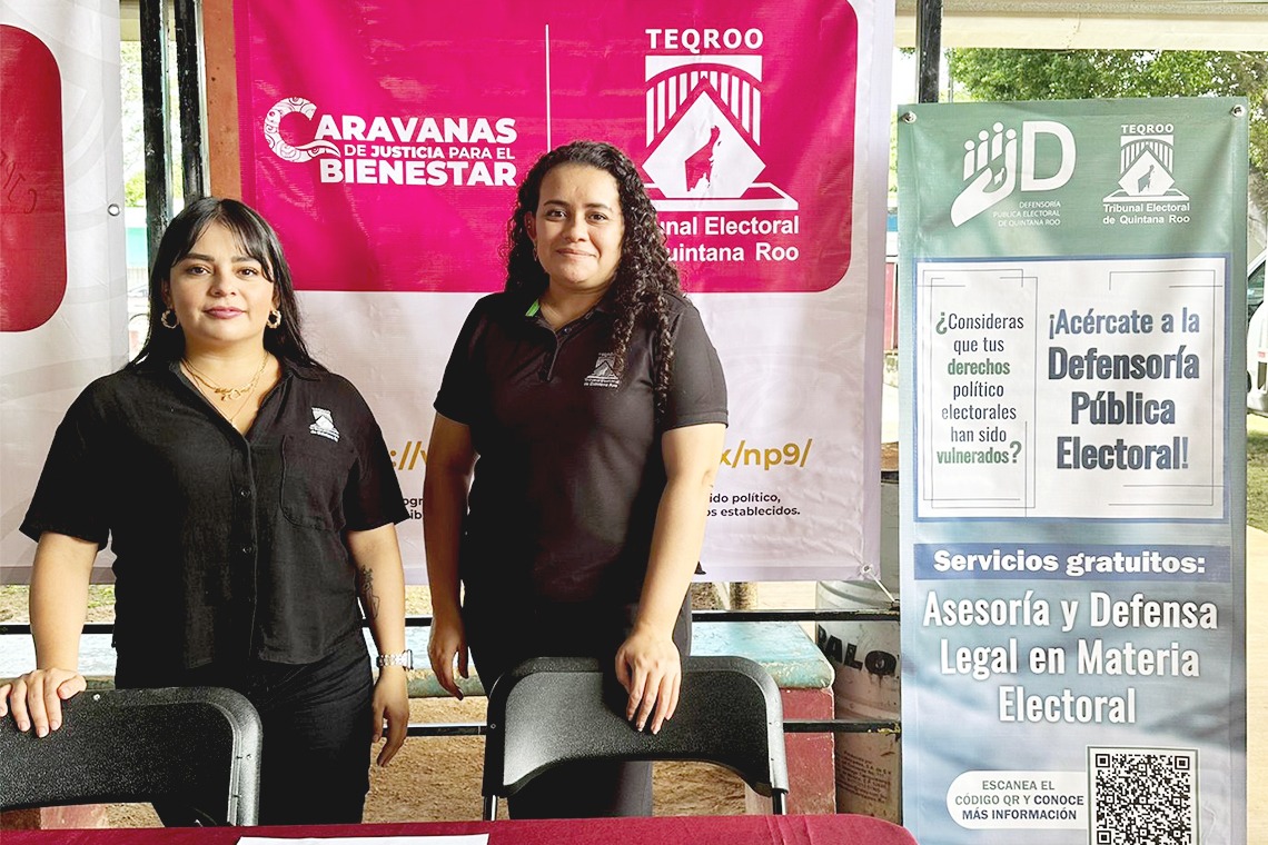 Por parte del TEQROO, asistió la Defensora Pública Electoral, Estefanía Carolina Caballero Vanegas y Montserrat Alejandra González Valencia, Auxiliar Administrativa, quienes ofrecieron información sobre la Defensoría Pública Electoral y los servicios que ofrece de manera gratuita, en específico, servicios de asesoría y defensa jurídica de los derechos político electorales de la ciudadanía.