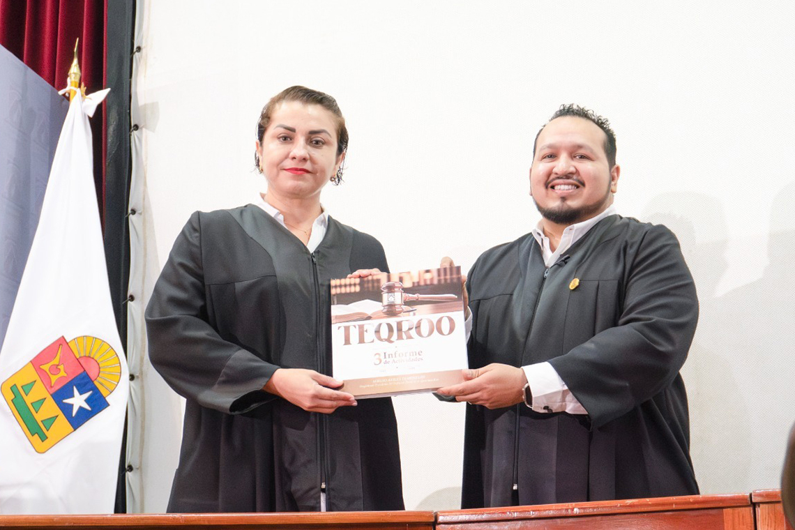 Agradeció al equipo que conforma el TEQROO, pues cada una de las acciones que este día se informa se logró trabajar junto a un equipo excepcional, lleno de pasión, dedicación y talento. “Juntos hemos sorteado obstáculos, celebrado triunfos y forjado vínculos que trascienden lo meramente profesional, ustedes mis colegas, son el verdadero motor que impulsa el éxito del deber cumplido”.