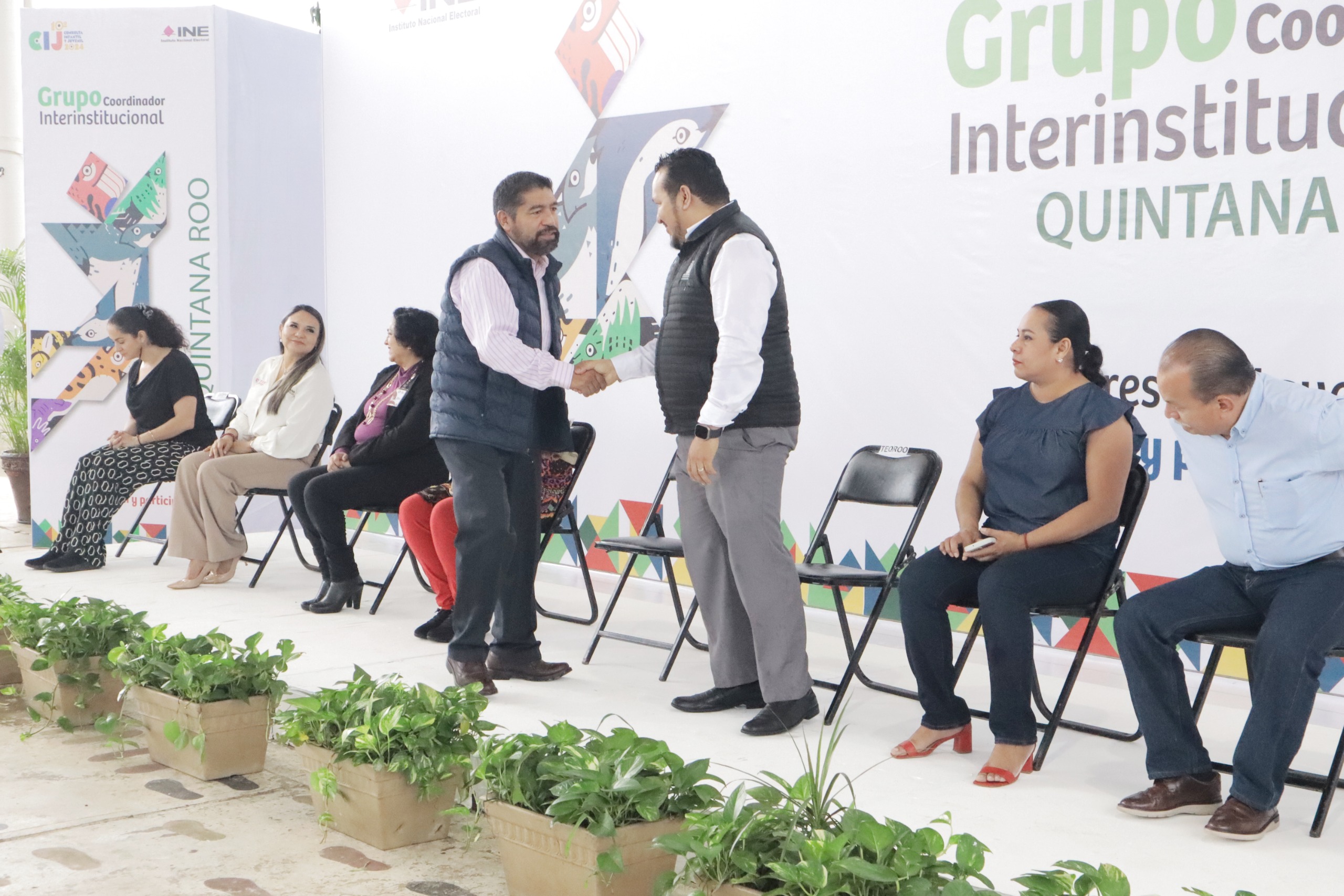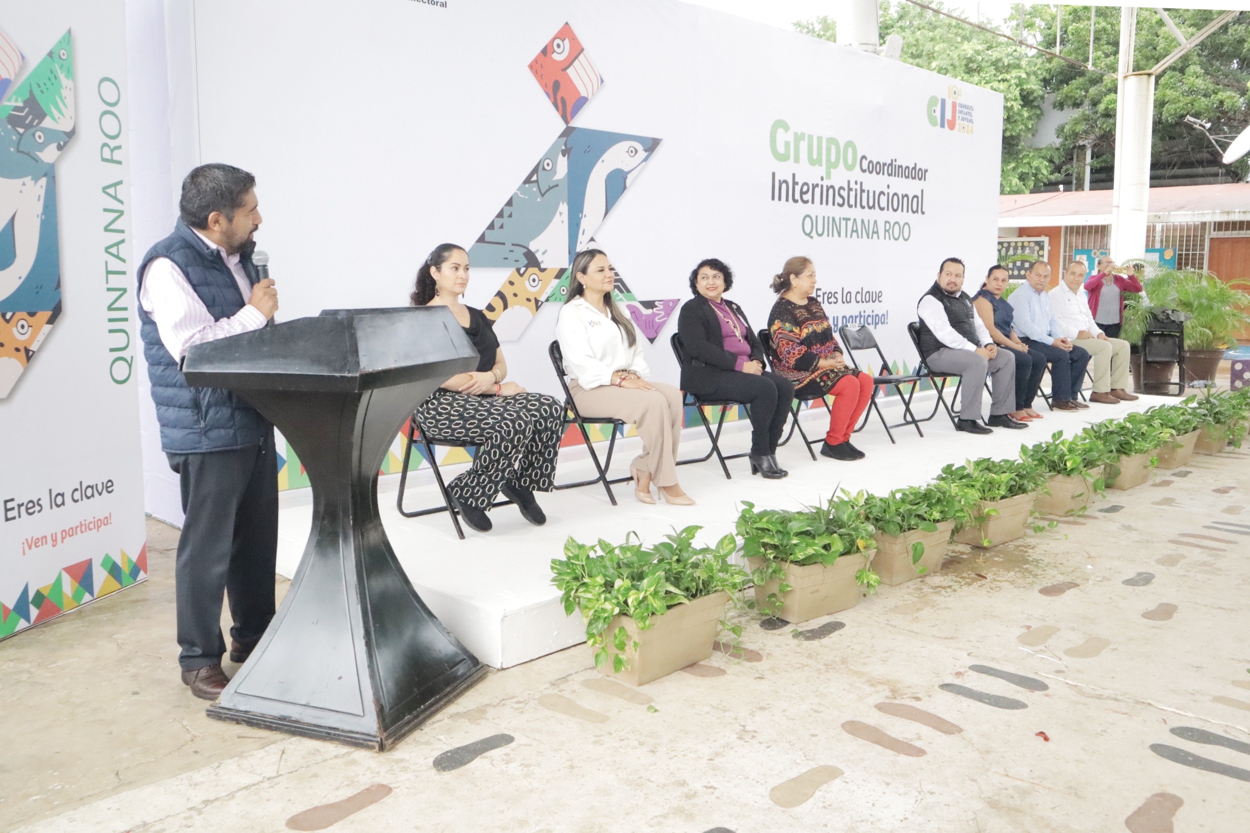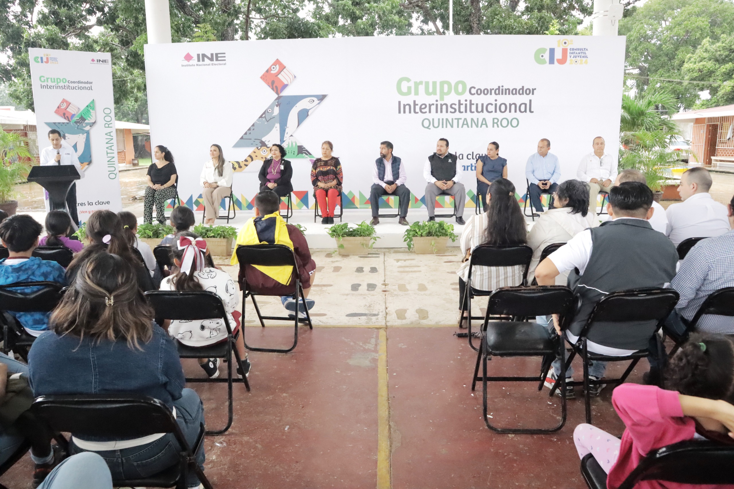La bienvenida estuvo a cargo del Vocal de la Junta Local del INE en Quintana Roo, Sergio Bernal Rojas, quien destacó la importancia de maximizar el ejercicio de los derechos de las niñas, niños y adolescentes a la participación y la expresión.