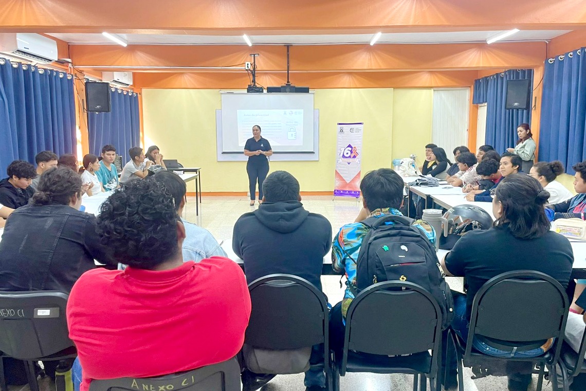 La actividad se realizó en la Sala 1 de Desarrollo Académico de la institución educativa, en donde también participó Rossely Denisse Villanueva Kuyoc, Jefa de Área de Capacitación del Tribunal Electoral, y por parte del ITCH, la Coordinadora de Orientación Educativa, Nora Ivette Koh Dzul y la tutora del grupo, Nallely Aguilar Castro.